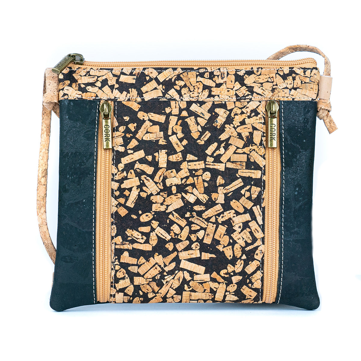 This crossbody bag is the perfect combination of sustainability and fashion. Crafted from natural material, it features vibrant, eye-catching patterns that make it a unique and stylish accessory for any occasion. The bag is lightweight, durable, and water-resistant, ideal for daily use. It has a spacious interior with a secure zipper closure and an adjustable strap for comfortable wear. With two front zipper pockets, it offers convenient access to your essentials on the go.
